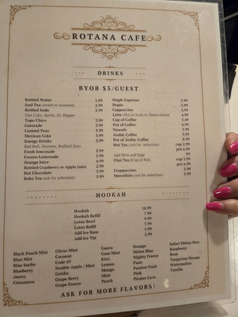 Customer reviews speak volumes about the authentic taste and friendly service at Rotana Cafe. One frequent visitor expressed their love for the cafe's atmosphere, stating how “the new ownership has really just kicked it up a notch.” Others rave about their experiences with the hookah, highlighting it as a great addition to a laid-back evening. You’ll often find patrons returning not just for the food, but also for the community feel created by the staff, including the knowledgeable waitress Kenny, who is praised for bringing a positive vibe to every table.